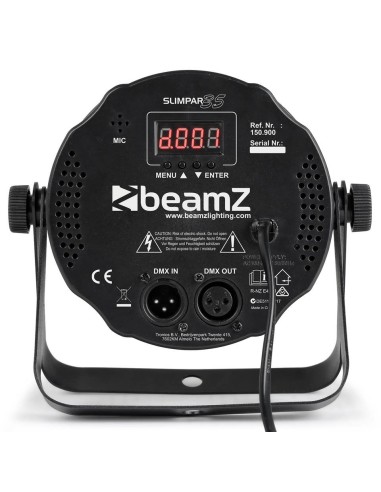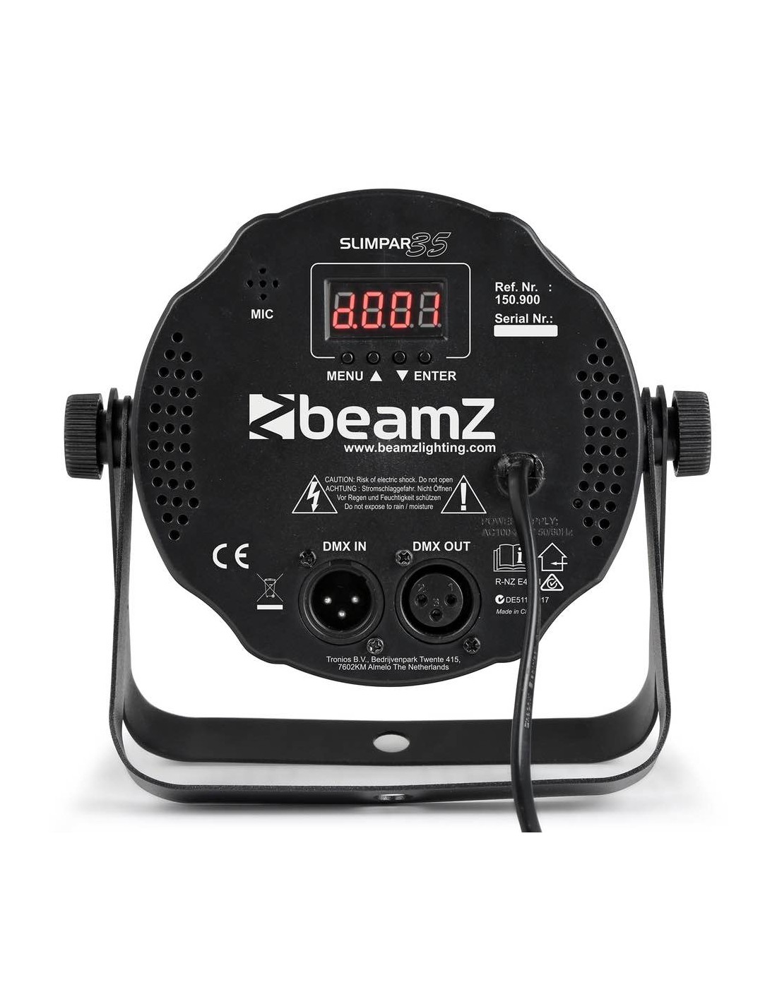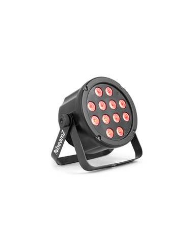 Supplied features: Master/Slave mode Light source: 3-in-1 LED LED colours: Red, Green, Blue LED power: 3W Quantity of LEDs: 12 Beam angle: 19 Field angle: 37 DMX channels: 3, 4, 7 DMX connector: 3-pin XLR Modes: Automatic programs, DMX Power consumption: 25W Power supply: 100-240VAC 50/60Hz Dimensions (L x W x H): 185 x 90 x 180mm Weight: 0,80