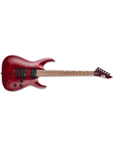 Construcción atornillada - Escala de 25,5” - Cuerpo de caoba con tapa de arce acolchado - Mástil de arce con perfil en “U fina” - Diapasón de jatoba tostado con 24 trastes extra jumbo - Radio de 14” - Cejilla de 42 mm - Herrajes negros - Puente LTD TOM con String Thru - Clavijas de bloqueo LTD - Pastillas ESP Designed LH-150N/B - Cuerdas D'Addario XL110 (.010/.013/.017/.026/.036/.046)