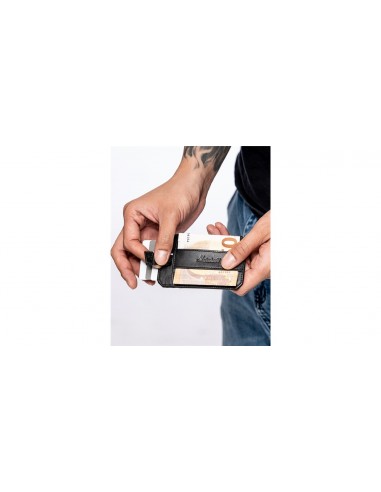 Un accesorio compacto y ligero adecuado para guardar tarjetas y billetes. Fabricada en piel teñida con aceite vegetal y encerada, cuenta con una pestaña magnética que te permitirá extraer fácilmente los documentos compatibles.