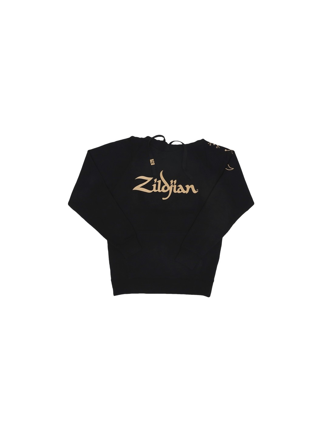 Rindiendo homenaje al fundador Zildjian Avedis I, esta sudadera con capucha ultra cómoda presenta símbolos de alquimia de cobre, estaño y plata (los elementos de aleación de la familia Zildjian ) a lo largo del brazo izquierdo y un logotipo dorado Zildjian en el frente. Esta resistente sudadera negra tipo pulóver está confeccionada con una mezcla de vellón súper suave y tiene cordones negros gruesos con una etiqueta Z tejida y un bolsillo tipo canguro. Disponible en tallas unisex desde XS a 3XL, esta sudadera con capucha cálida y cómoda es imprescindible para cualquier fanático de los platillos Zildjian .