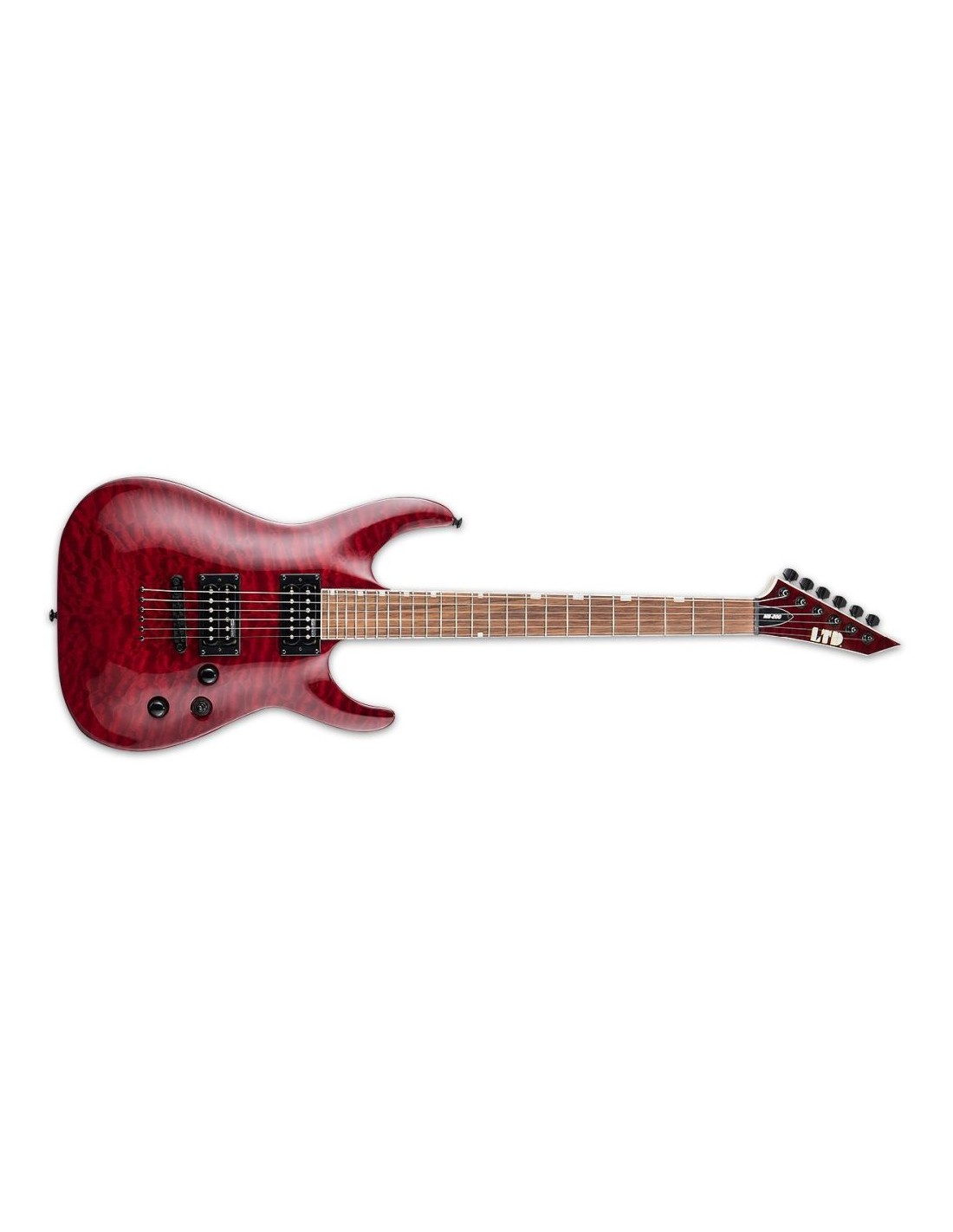 Construction vissée - Diapason de 25,5 pouces - Corps en acajou avec table en érable matelassé - Manche en érable avec profil « Thin U » - Touche en jatoba torréfié avec 24 frettes extra jumbo - Rayon de 14 pouces - Sillet de 42 mm - Accastillage noir - Chevalet LTD TOM avec cordes traversantes - Mécaniques bloquantes LTD - Micros ESP Designed LH-150N/B - Cordes D'Addario XL110 (.010/.013/.017/.026/.036/.046)