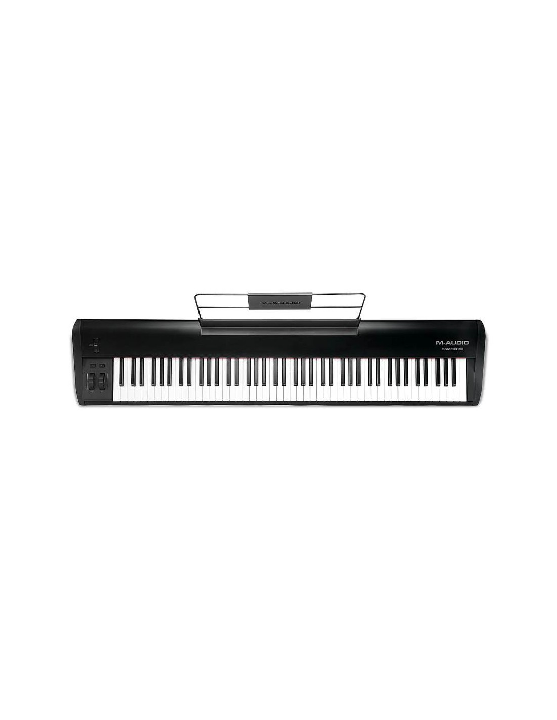 Master Keyboard USB e MIDI con 88 tasti pesati “hammer action”, passo standard, sensibili alla dinamica, ruote pitch bend e modulation, cursore volume, pulsanti +/- per l’invio di messaggi di program change, cambio ottava, CC e MMC, 4 zone assegnabili per split e layer, controlli liberamente assegnabili mediante il software Hammer 88 Controller Editor (incluso), ingressi per pedali di Sustain, Expression e Soft Pedal, uscita MIDI, connessione USB, alimentazione via USB o con alimentatore esterno opzionale, leggio. Include gli strumenti virtuali AIR Mini Grand, AIR Velvet, AIR DB-33, SONiVOX Eighty Eight Ensemble e il software Ableton Live Lite, 3 mesi di lezioni di piano tramite il sito https://www.skoove.com. Dimensioni: 302 x 127 x 1420 mm. Peso: 17.5 kg. Compatibile in modo nativo (non necessita di driver) con Mac, PC e dispositivi iOS. N.B. Verificare nel sito del costruttore i requisiti minimi di sistema e i sistemi operativi Mac e PC attualmente supportati.