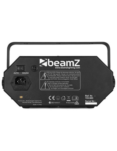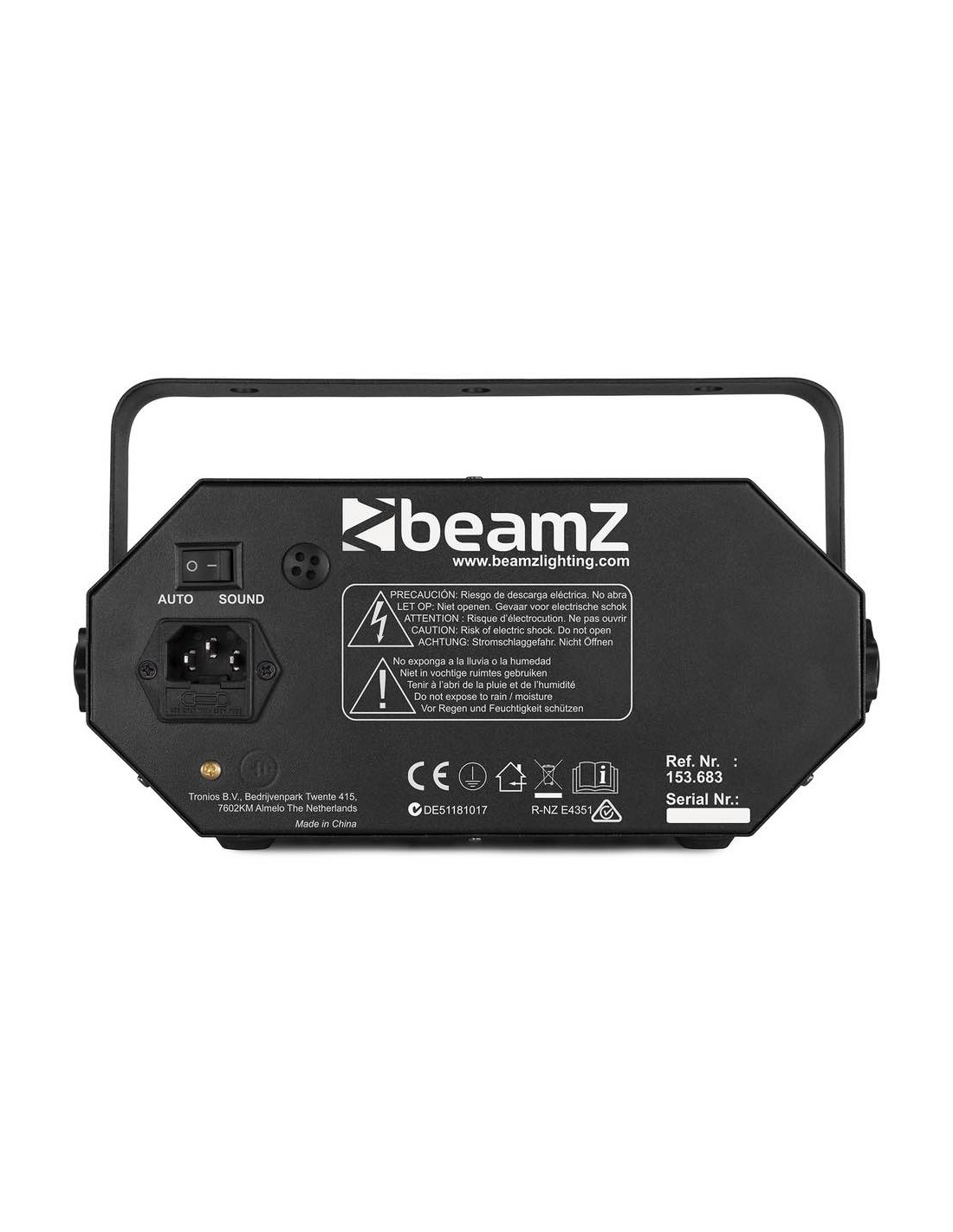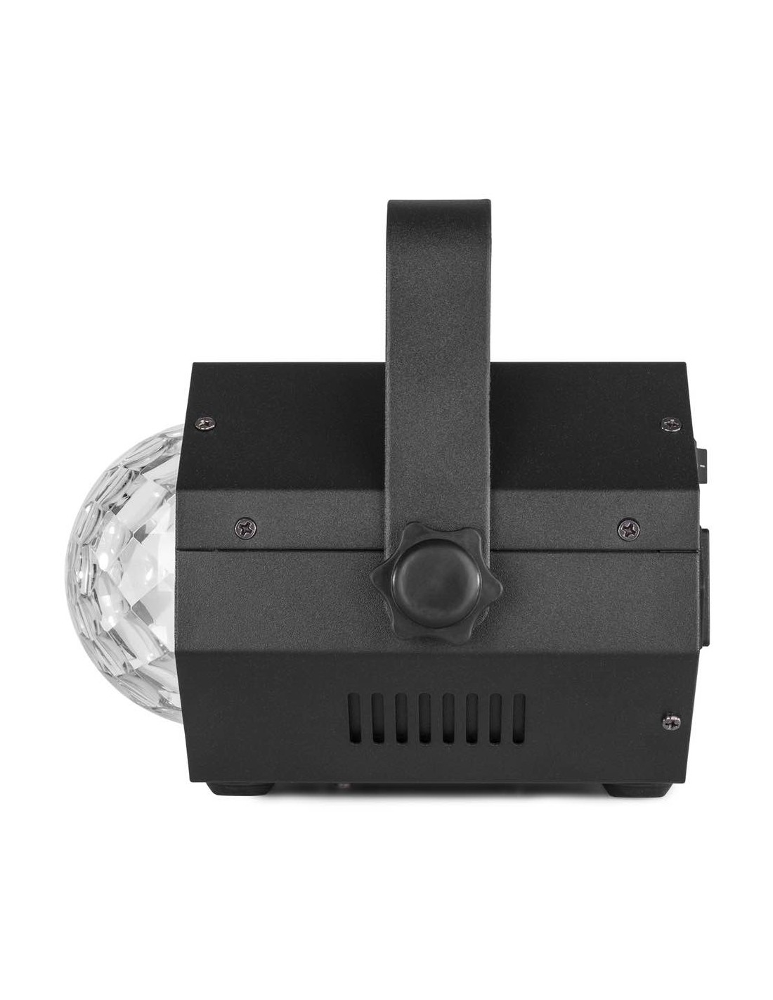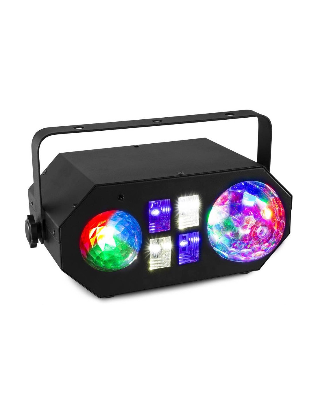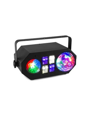 Light source: 5-in-1 LED LED colours: Red, Green, Blue, White, Ultra Violet Quantity of strobe: LEDs 4 Beam angle: 6 Modes: Automatic programs Power consumption: 0.5 - 0.2A Power supply: 100-240VAC 50/60Hz Accessories: Mounting bracket, Remote control Dimensions (L x W x H): 240 x 130 x 112 Weight: 1,60