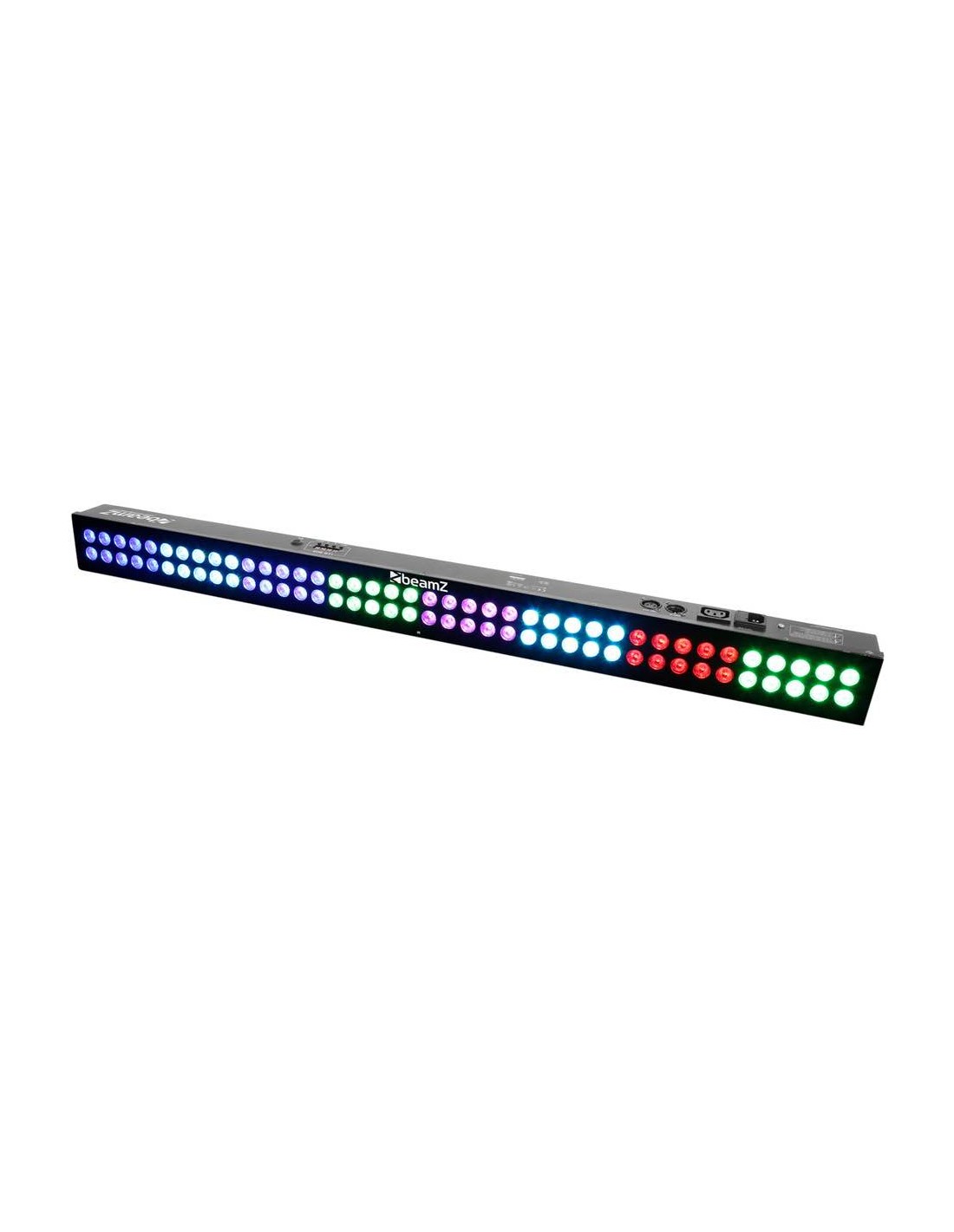 Supplied features: Master/Slave mode Light source: 3-in-1 LED LED colours: Red, Green, Blue LED power: 3W Quantity of LEDs: 80 Beam angle: 15 Field angle: 30 Illuminance: 6700 lx @ 1m DMX channels: 3, 6, 12, 24, 48 DMX connector: 3-pin XLR Modes Automatic programs: DMX Daisy chain Yes: (max. 6 bars) Power plug: IEC Power consumption: 120W Power supply: 100-240VAC 50/60Hz Dimensions (L x W x H): 990 x 85 x 75mm Weight: 3,85