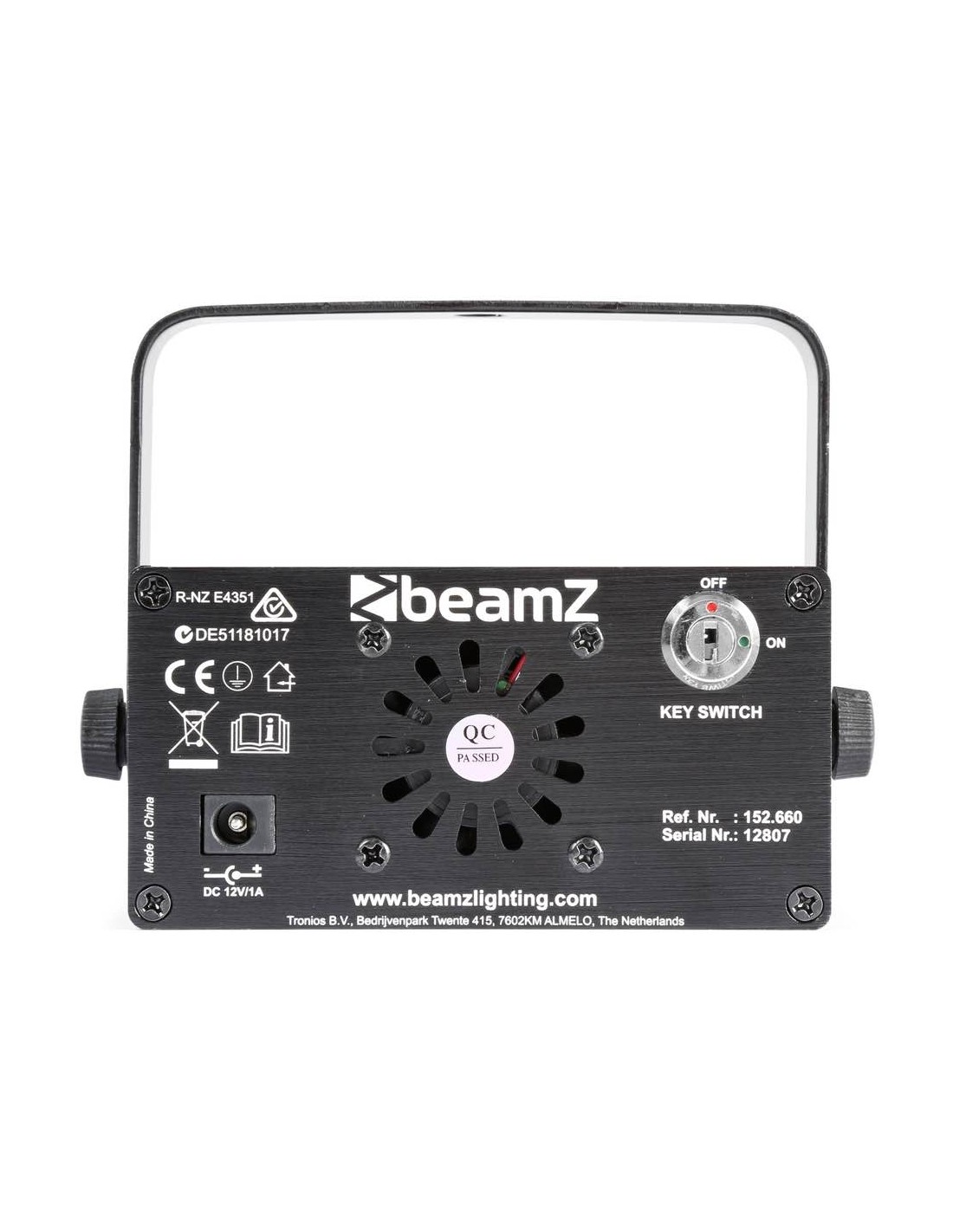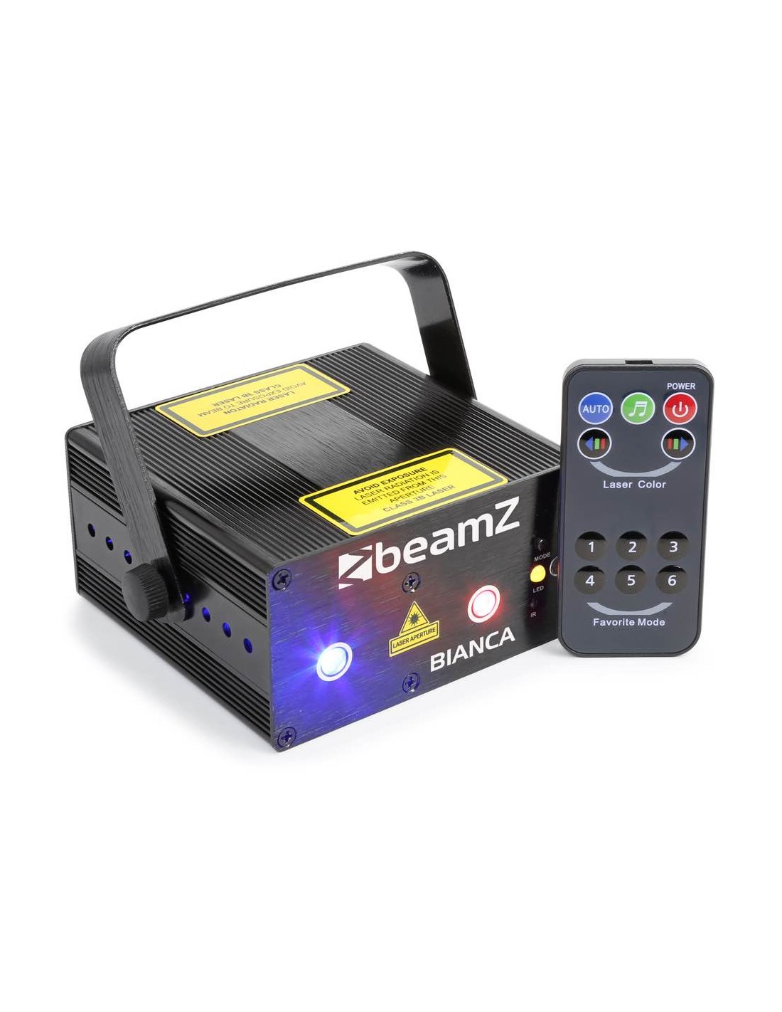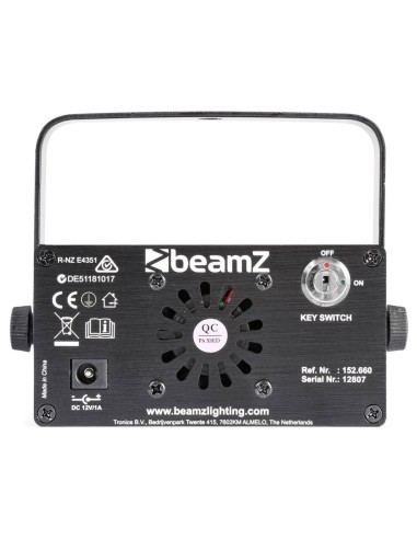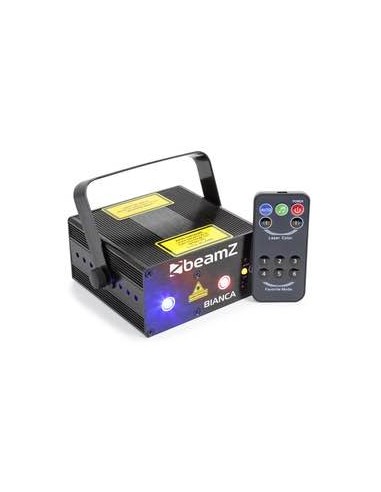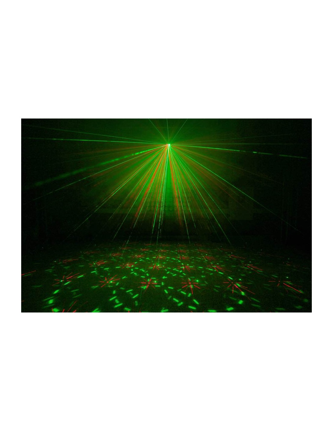 Laser Rosso (150mW), Verde (30mW) e Blu (150mW) Controllo remoto IR Laser con 12 gobo Show pre programmati Attivazione sonora Modalità automatica con velocità regolabile