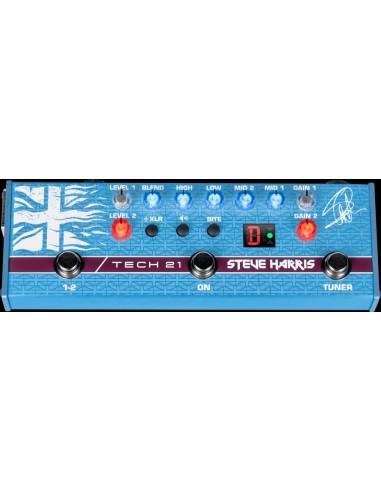 Due canali con controlli di Gain e Level separati - Controllo Blend per miscelare il segnale diretto da quello processato - EQ attivo a 4 bande, cut or boost ±18dB - Bite switch per ottenere il tipico Steve Harris sound - Accordatore cromatico - Dimensioni (W x D x H): 19.7 x 6.4 x 3.2 cm